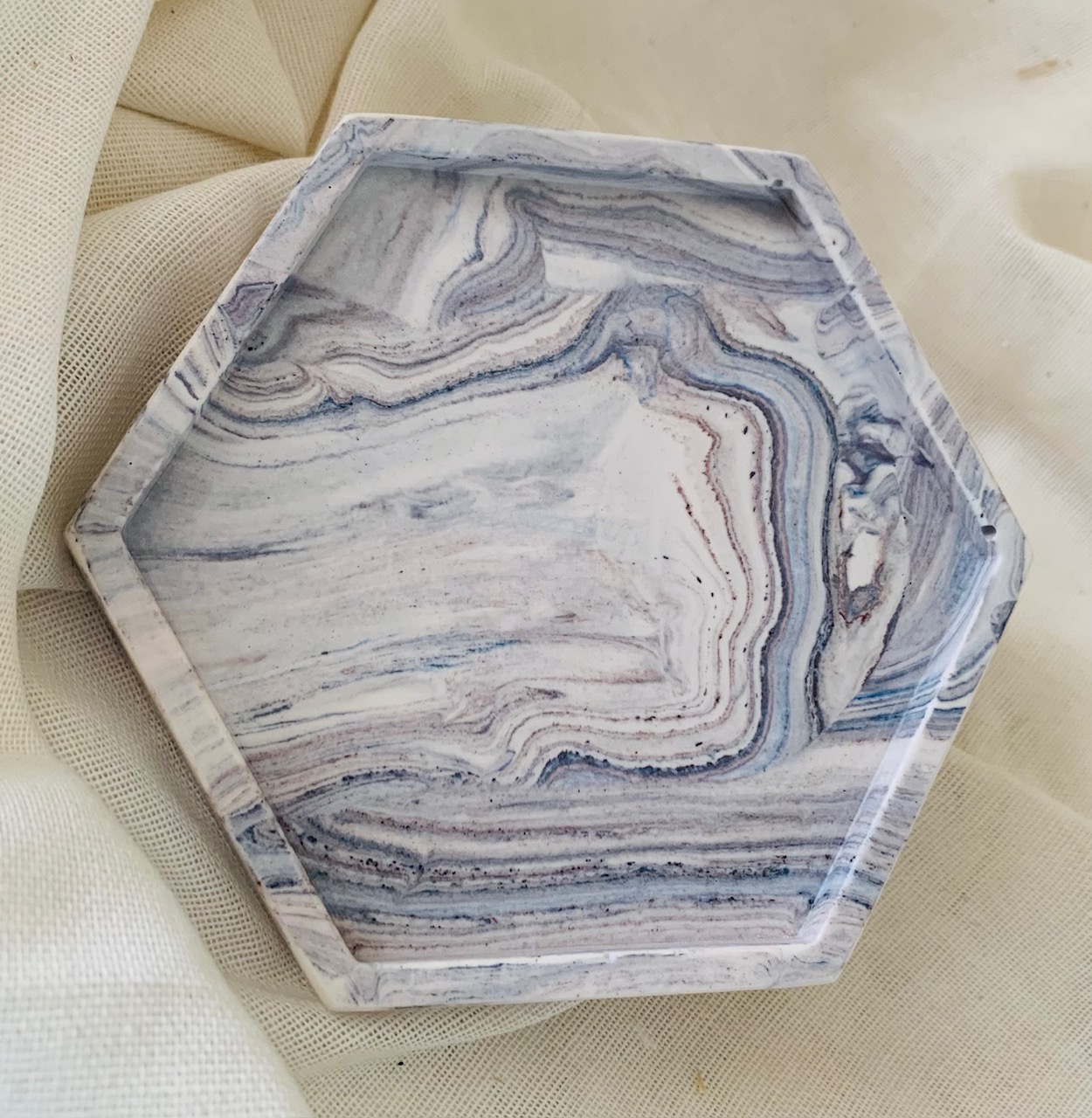 O jesmonite é um material durável, leve e sustentável, com acabamento suave e toque de pedra.