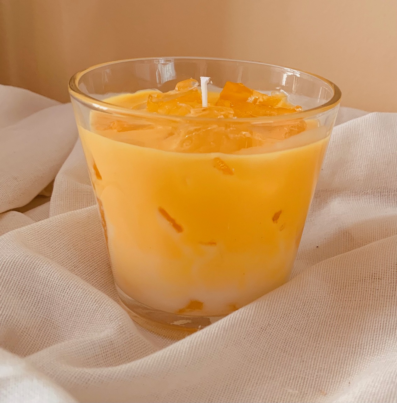 Decorada com cubos de gelo realistas feitos em gel de parafina, esta vela reproduz de forma encantadora o visual de uma bebida gelada — perfeita para quem adora fragrâncias tropicais e design original.