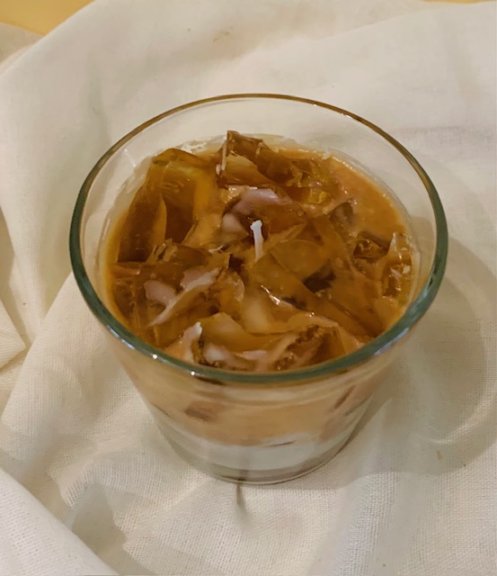 Decorada com cubos de gelo realistas feitos em gel de parafina, esta vela reproduz de forma encantadora o visual de um iced latte — combinando o toque artesanal com um design criativo e original.