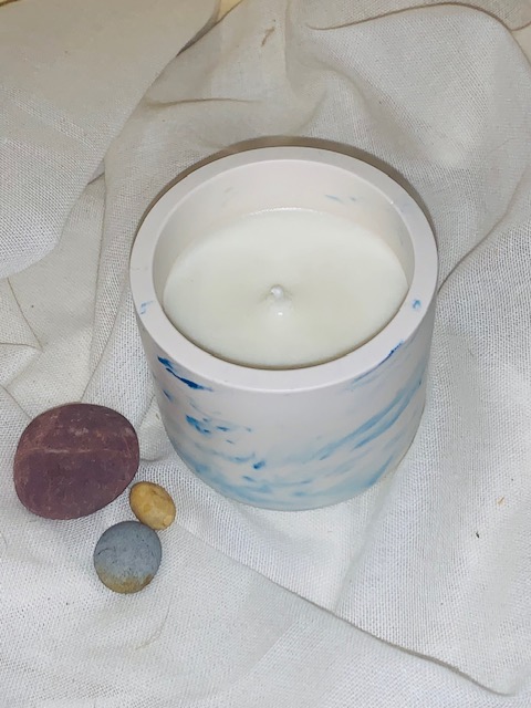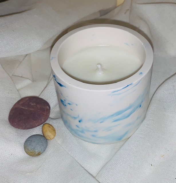 A cera de soja na sua cor natural completa o design minimalista e sereno, tornando cada vela uma peça única e artesanal.